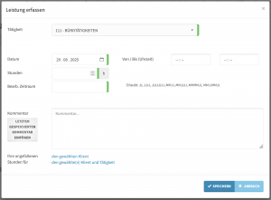 Der Bereich Urlaub/Krank in Tätigkeiten wurde in Abwesenheit umbenannt. Dementsprech wurde der Menüpunkt im Tagesplan umbenannt zu Abwesenheit hinzufügen. So lassen sich auch Tätigkeiten wie externe Fortbildungen in diesem Bereich definieren und werden in dieser Funktion auch zur Verfügung gestellt.
